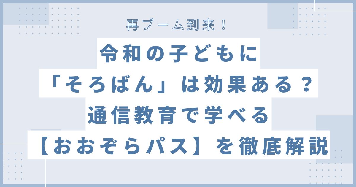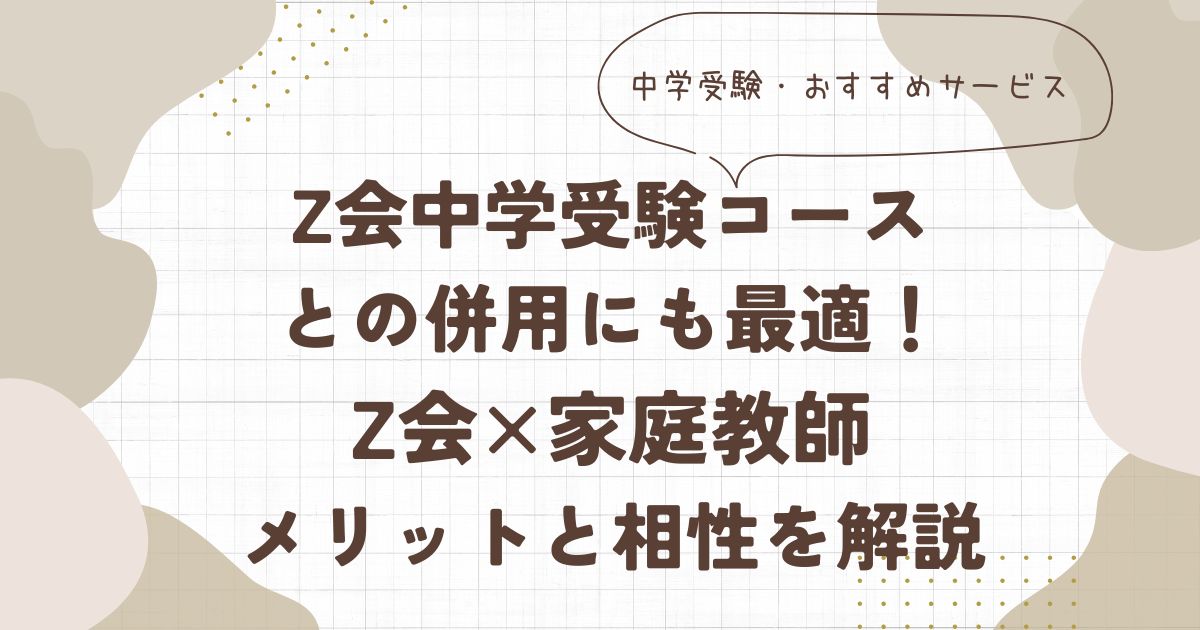 中学受験で親がやりがちな失敗7選|後悔しないための注意点 2025年9月18日 令和の子どもに「そろばん」は効果ある?通信教育で学べる【おおぞらパス】を徹底解説 2025年9月13日 【体験談】勉強嫌いの小学生でも楽しめた!kiminiオンライン英会話の魅力 2025年9月8日 中学受験対応オンライン家庭教師6選|自宅にいながらマンツーマン指導が可能|メリット・デメリット紹介 2025年8月31日 中学受験はプロ家庭教師に任せるべき?メリットとデメリットを徹底解説【2025年版】 2025年8月31日 【塾なし中学受験】(小5)Z会中学受験コース 定着度テストの結果から見る今後の課題 2025年8月28日 Z会中学受験コースとの併用にも最適!Z会×家庭教師のメリットと相性を解説 2025年8月28日 【2025年版】中学受験に強い家庭教師8社を徹底比較!料金・特徴・口コミまとめ 2025年8月12日 中学受験生の夏休みスケジュール徹底比較|塾あり・塾なしでどう違う? 2025年7月22日 【塾なし中学受験】(小5)Z会中学受験コース 夏休みスタート! 2025年7月20日 ーPICKUPー 夏休みで偏差値アップをねらいたい! 中学受験対応オンライン家庭教師6選|自宅にいながらマンツーマン指導が可能|メリット・デメリット紹介 2025年8月31日 スタディサプリを中学受験で活用するには?中学受験withスタサプ 2025年3月3日 ーCATEGORYー 中学受験タイムライン2027 記事一覧 おすすめ教材・サービス 記事一覧 模試・志望校研究 記事一覧 家庭学習の工夫・時間管理 記事一覧 教科別対策 記事一覧 中学受験2029タイムライン 記事一覧 ー新着記事ー 中学受験で親がやりがちな失敗7選|後悔しないための注意点 中学受験は、子どもだけでなく親にとっても大きな挑戦。 わが家は親2人とも中学受験を経験していないので、ネットやSNS、中受経験者やZ会からの情報収集で進めていますが、正直何が正解なのかわからないまま進めて… 令和の子どもに「そろばん」は効果ある?通信教育で学べる【おおぞらパス】を徹底解説 令和の子どもに「そろばん学習」は効果ある?と感じている方は多いのではないでしょうか。 結論から言うと、効果はあります!計算力や暗算力に加えて、集中力や記憶力も鍛えられると言われています。 「そろばん=… 【体験談】勉強嫌いの小学生でも楽しめた!kiminiオンライン英会話の魅力 「宿題以外は一切やらない」「通信教育も続かない」勉強嫌いの小学生を前にして、親として不安になったことはありませんか? 実は、わが家の小学3年生の娘もまさにそのタイプ。Z会の中学受験コースは数か月でギブア… 中学受験対応オンライン家庭教師6選|自宅にいながらマンツーマン指導が可能|メリット・デメリット紹介 近年、中学受験に向けて「オンライン家庭教師」を選ぶご家庭が急増しています。 全国どこからでも難関校対策に強い講師とつながれるのが魅力。 また、Z会中学受験コースの映像授業に慣れている息子は、対面だと緊張… 中学受験はプロ家庭教師に任せるべき?メリットとデメリットを徹底解説【2025年版】 中学受験は小学生にとって大きな挑戦です。 集団塾に通う家庭も多いですが、「成績が伸び悩んでいる」「塾の授業についていけない」と感じる保護者の声も少なくありません。そこで注目されているのが 「中学受験に… 【塾なし中学受験】(小5)Z会中学受験コース 定着度テストの結果から見る今後の課題 Z会中学受験コース5年生を受講してはじめての「定着度テスト」。 かなり悪くて親子ともども落ち込んでいます。 定着度テストは、これまで中学受験コースで学習してきた内容について、どれだけ理解できているかを確…